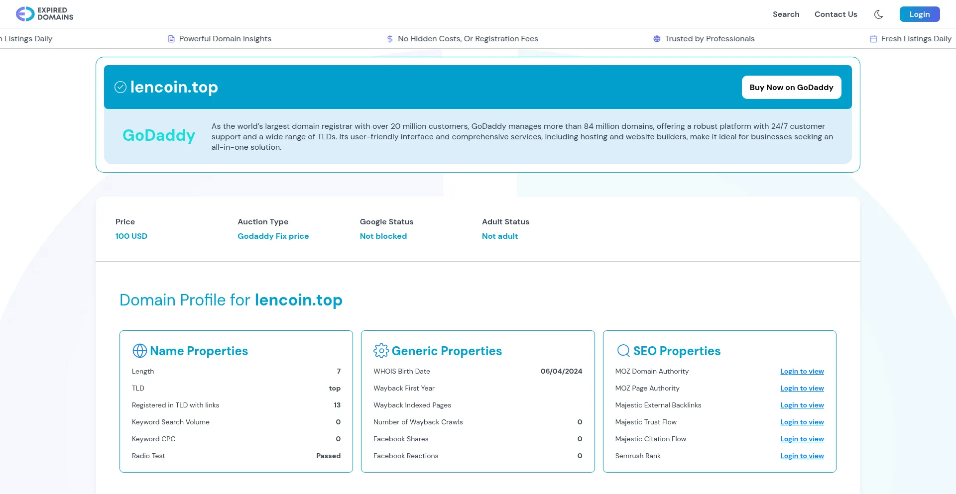 Buy lencoin.top Domain on GoDaddy for 100 | ExpiredDomains.com