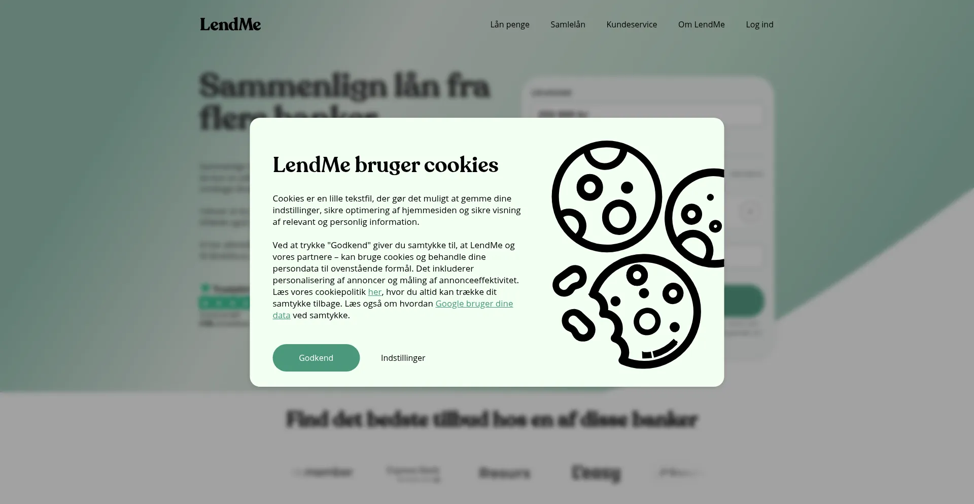 Sammenlign lån fra 17 kendte banker med én ansøgning hos LendMe. Få lånetilbud nemt og sikkert, og vælg det bedste lån. Start her.