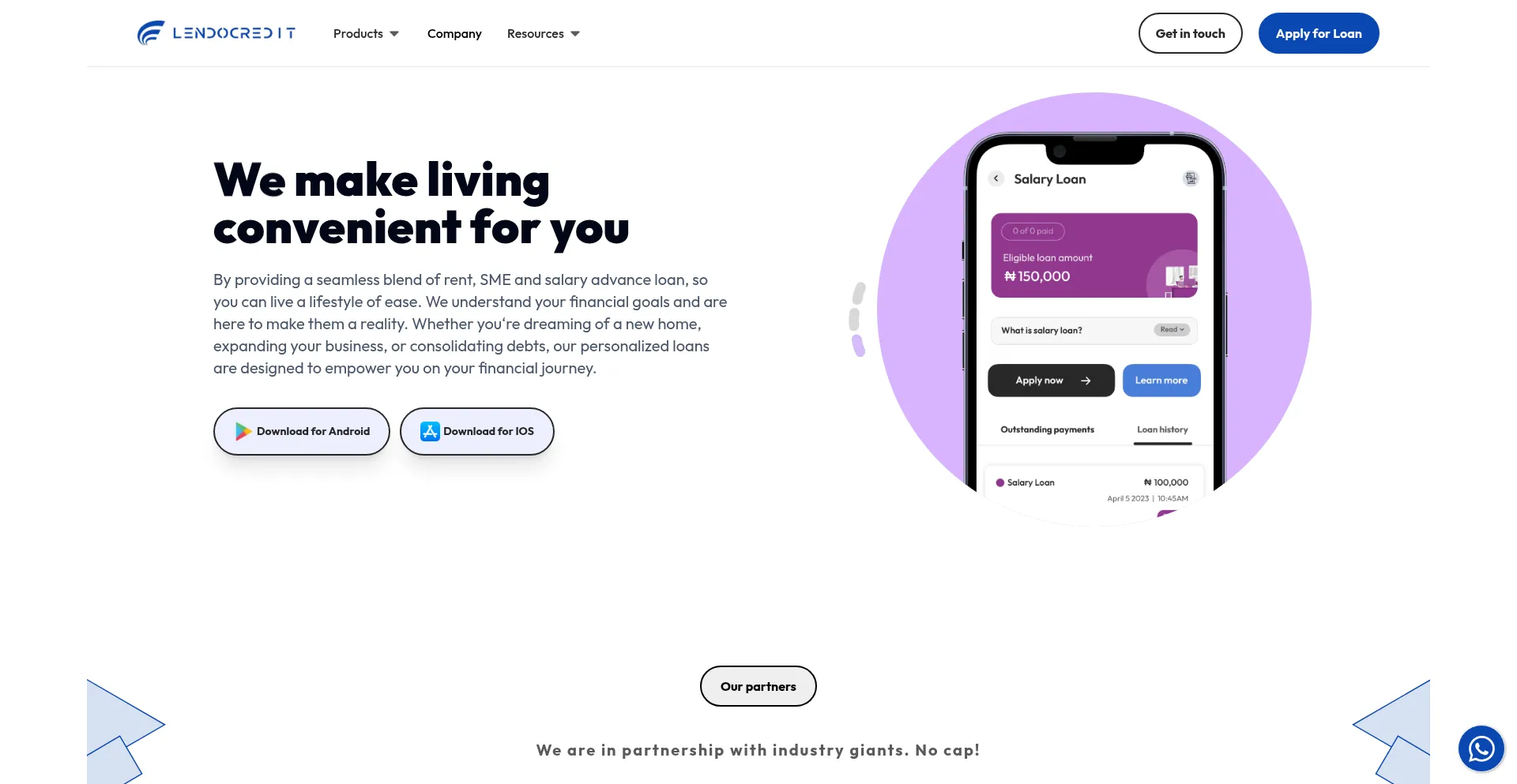The lendocredit.com website offers a mobile application for Android devices, indicating expanded platform presence beyond web-based services.