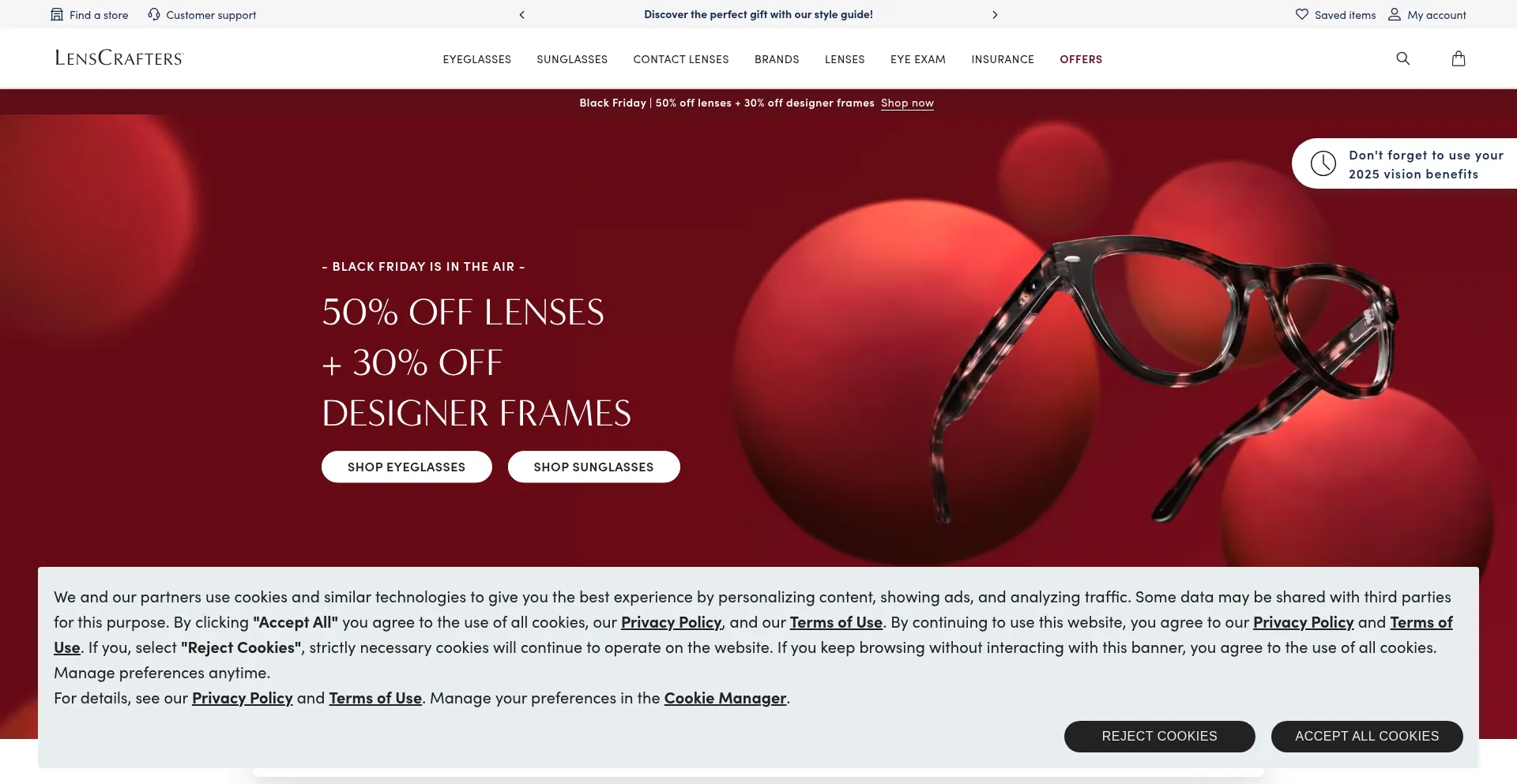 The website implements cookie consent mechanisms in compliance with privacy regulations such as GDPR or CCPA. This demonstrates that lenscrafters.com adheres to data protection standards and provides users with control over personal data collection practices.