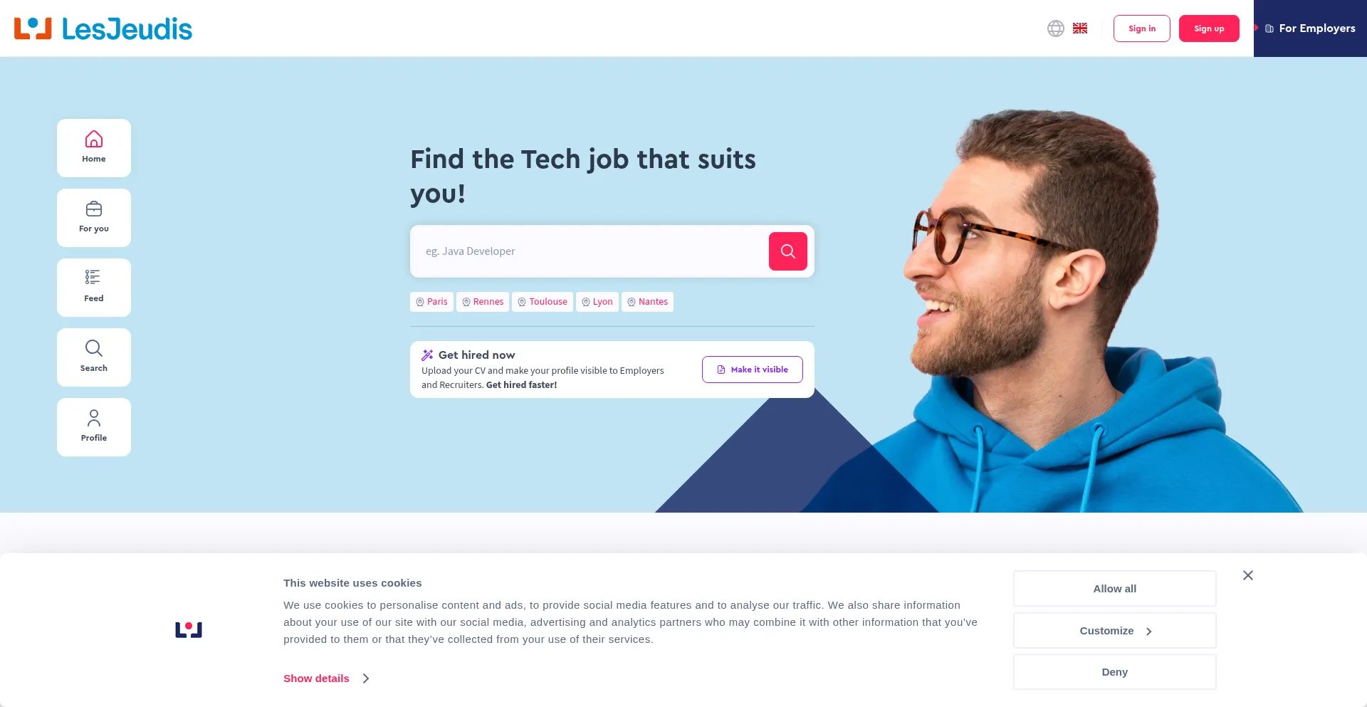 Rejoignez lesjeudis.com et explorez des milliers d'offres d'emploi disponibles correspondant à vos critères. Faites le premier pas ou avancez dans votre carrière.