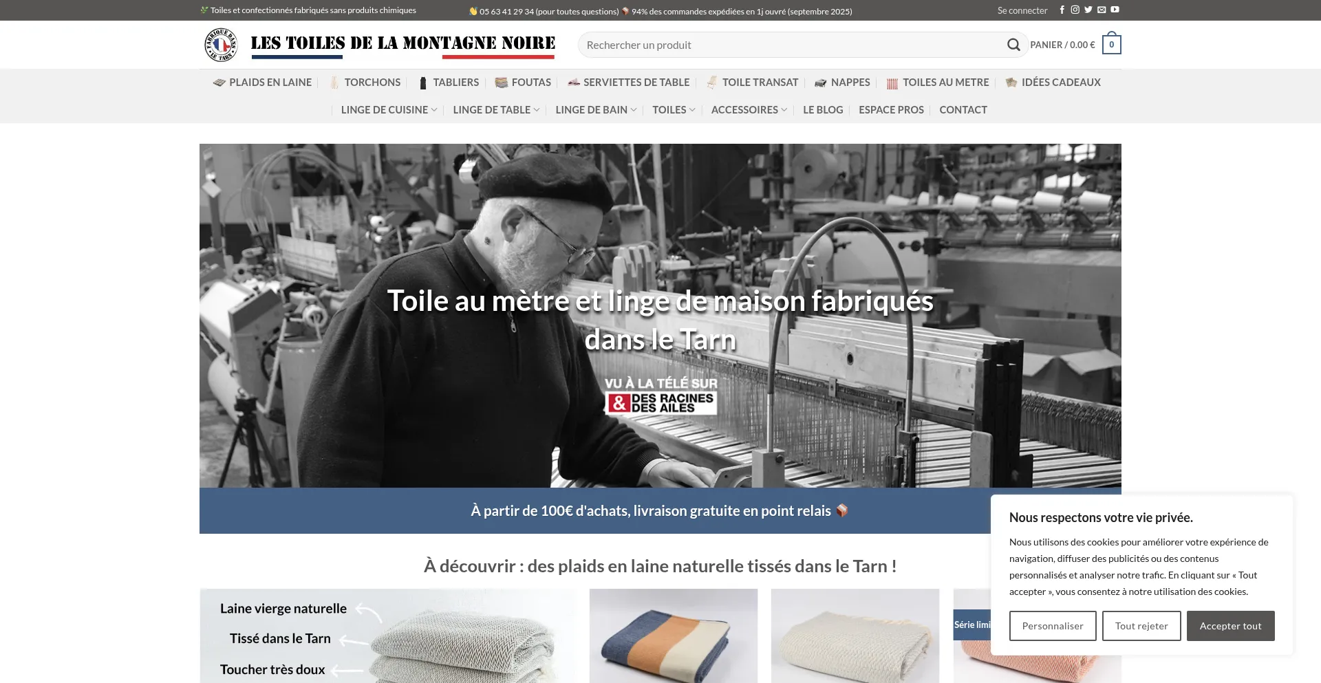 Linge de maison fabriqué en France | Les Toiles de la Montagne Noire