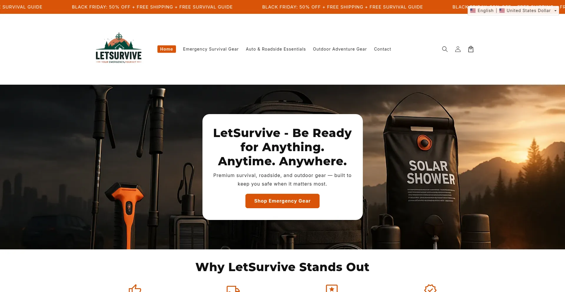 Analysis indicates that letsurvive.com operates as an e-commerce platform facilitating online transactions for goods or services. The website implements shopping cart functionality, payment processing systems, and product catalog features typical of commercial retail operations.