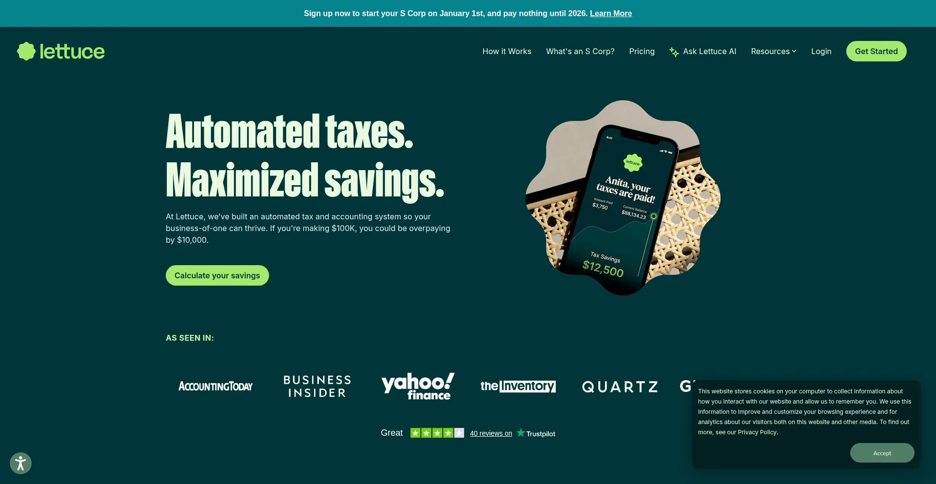 If you’re a business-of-one making over $100k, you could be overpaying your taxes by as much as $10,000. See how much you’ll save with Lettuce.
