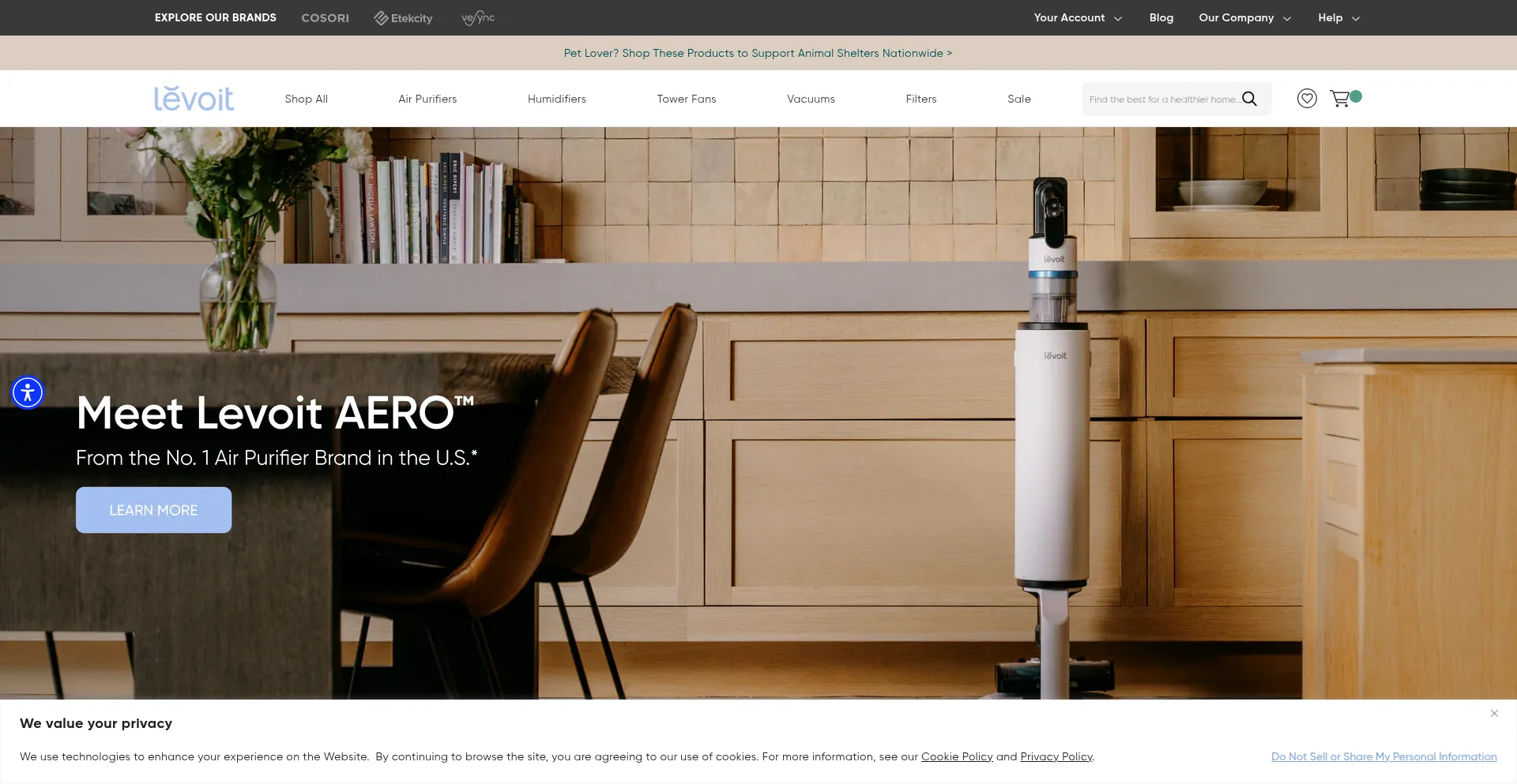 The website implements cookie consent mechanisms in compliance with privacy regulations such as GDPR or CCPA. This demonstrates that levoit.com adheres to data protection standards and provides users with control over personal data collection practices.