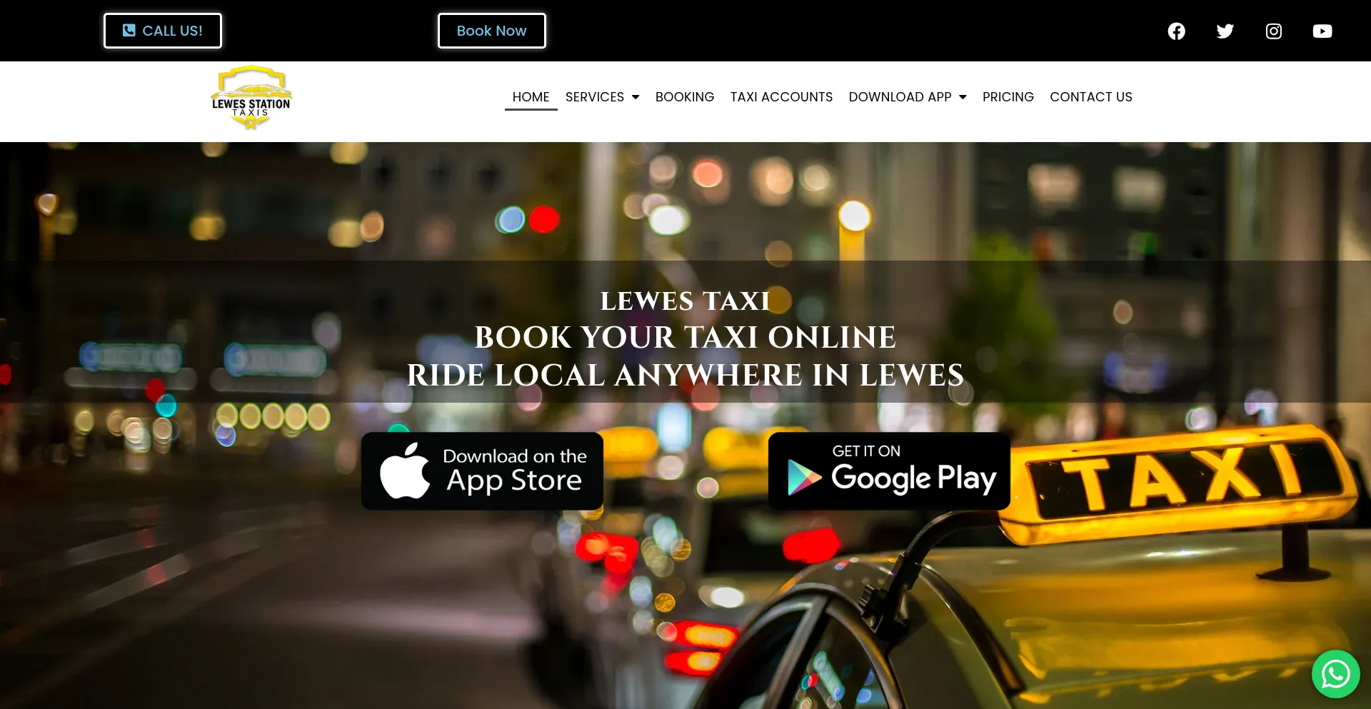 The lewesstationtaxis.co.uk website offers a mobile application for Android devices, indicating expanded platform presence beyond web-based services.