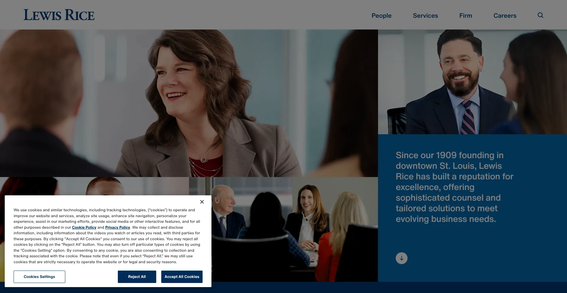 The website implements cookie consent mechanisms in compliance with privacy regulations such as GDPR or CCPA. This demonstrates that lewisrice.com adheres to data protection standards and provides users with control over personal data collection practices.