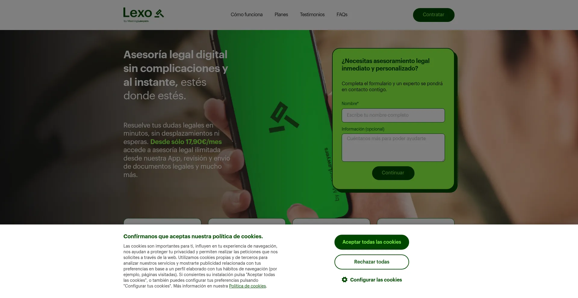 The website implements cookie consent mechanisms in compliance with privacy regulations such as GDPR or CCPA. This demonstrates that lexo.meetinglawyers.com adheres to data protection standards and provides users with control over personal data collection practices.