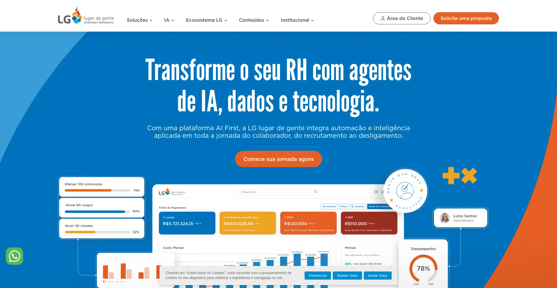 A maior HR Tech do Brasil. Soluções completas, com inteligência artificial integrada, para atender toda a jornada do colaborador