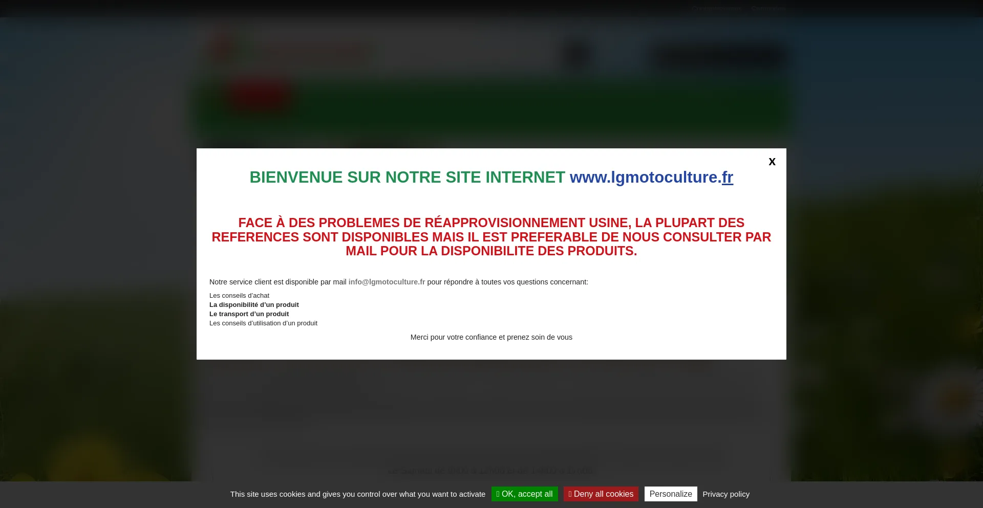 Spécialiste de Pièces, Matériels, Accessoires MOTOCULTURE, LIVRAISON en 24/48h partout en France