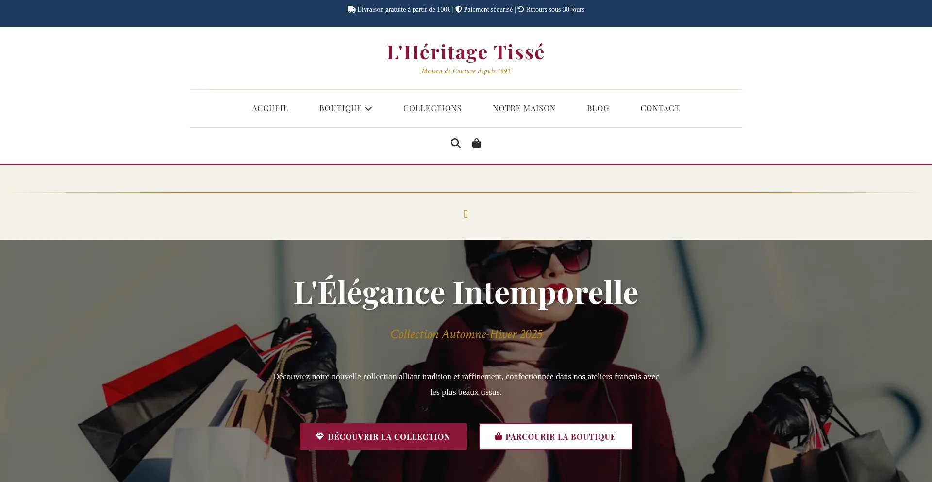 L'Héritage Tissé - Maison de couture traditionnelle depuis 1892. Vêtements classiques et intemporels de qualité française.