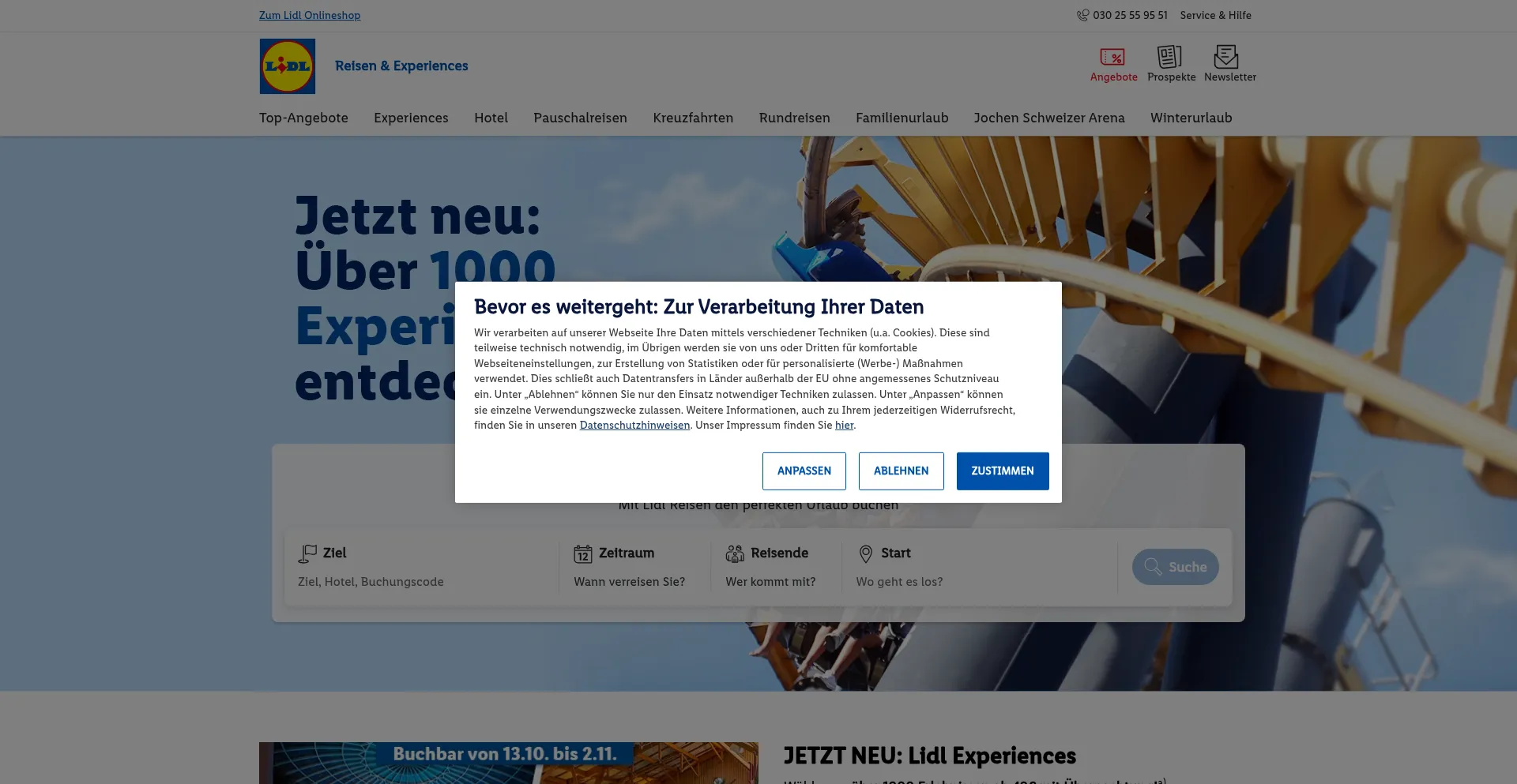 The website implements cookie consent mechanisms in compliance with privacy regulations such as GDPR or CCPA. This demonstrates that lidl-reisen.de adheres to data protection standards and provides users with control over personal data collection practices.