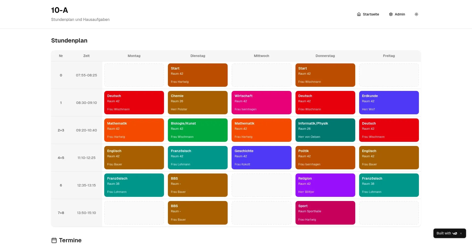 Stundenplan und Hausaufgaben fΓΌr Klasse 10-A