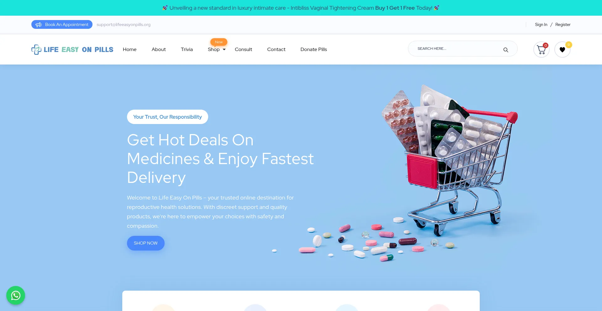 Analysis indicates that lifeeasyonpills.co operates as an e-commerce platform facilitating online transactions for goods or services. The website implements shopping cart functionality, payment processing systems, and product catalog features typical of commercial retail operations.