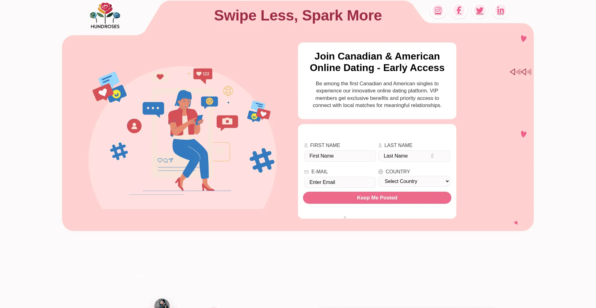 Join HundRoses dating app for Canadian & American singles. Find genuine matches & meaningful connections. Swipe less, spark more!