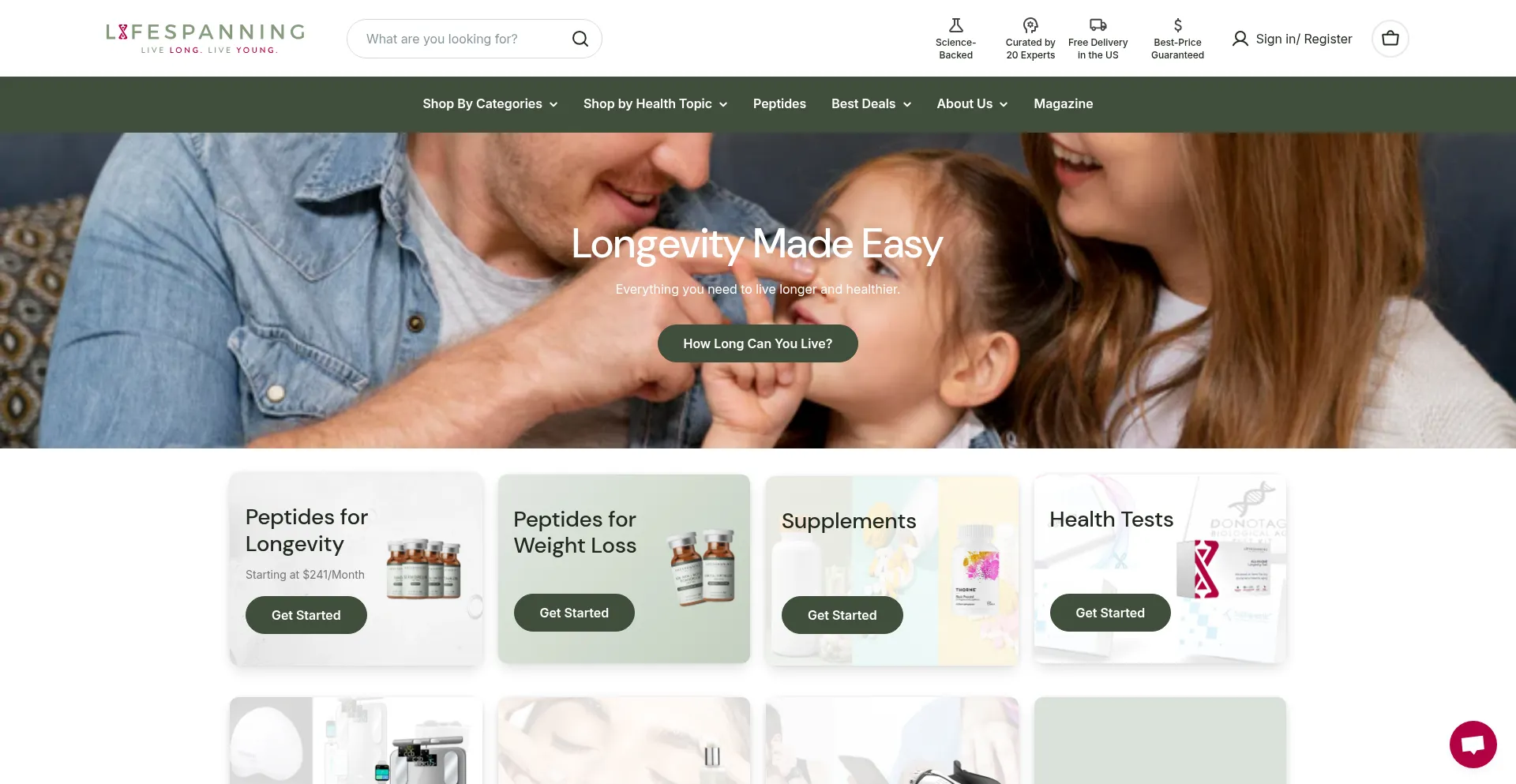 Lifespanning offers a comprehensive approach to health and longevity, providing science-backed supplements, personalized assessments, and premium health devices to help you live...