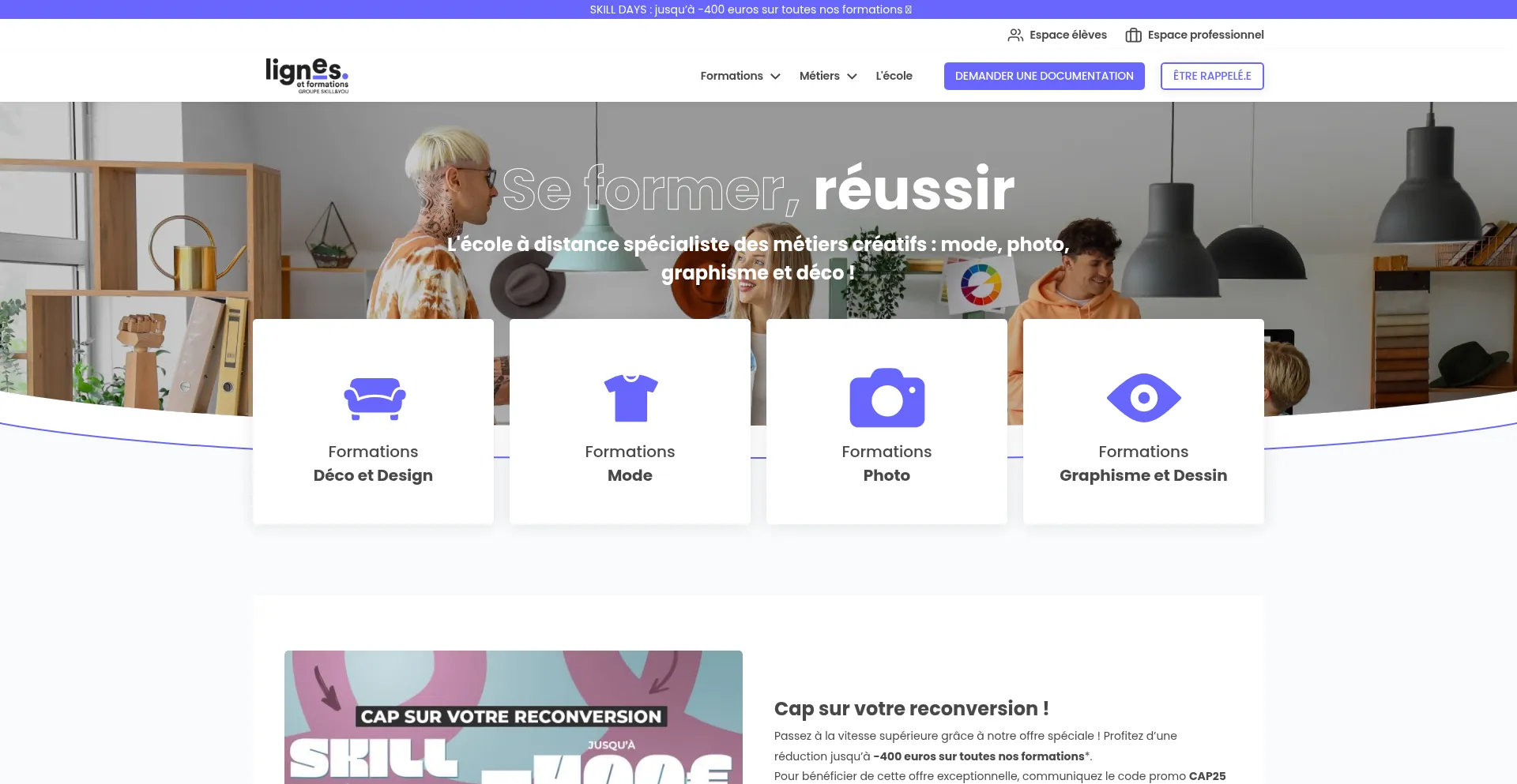 Formez-vous en ligne aux métiers de la mode, de la photo, du graphisme et de la déco. Lignes et Formations, votre école de référence. Formation à distance.