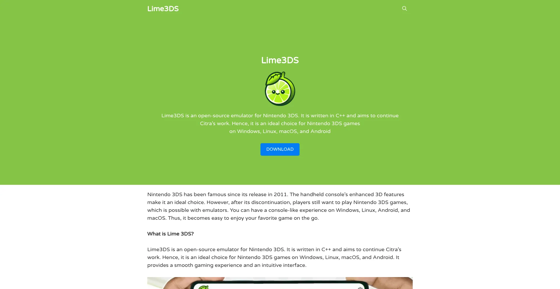 Lime3DS Lime3DS is an open-source emulator for Nintendo 3DS. It is written in C++ and aims to continueCitra's work. Hence, it is an ideal choice for Nintendo