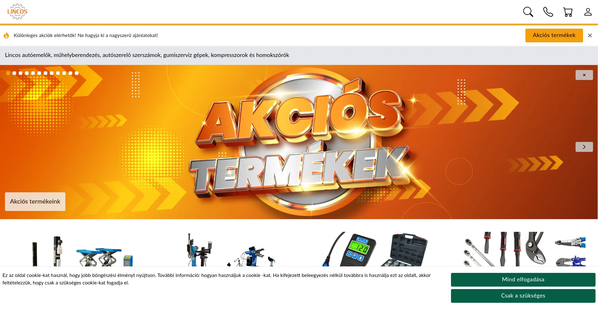 Lincos autóemelők, műhelyberendezés, autószerelő szerszámok, gumiszerviz gépek, kompresszorok és homokszórók