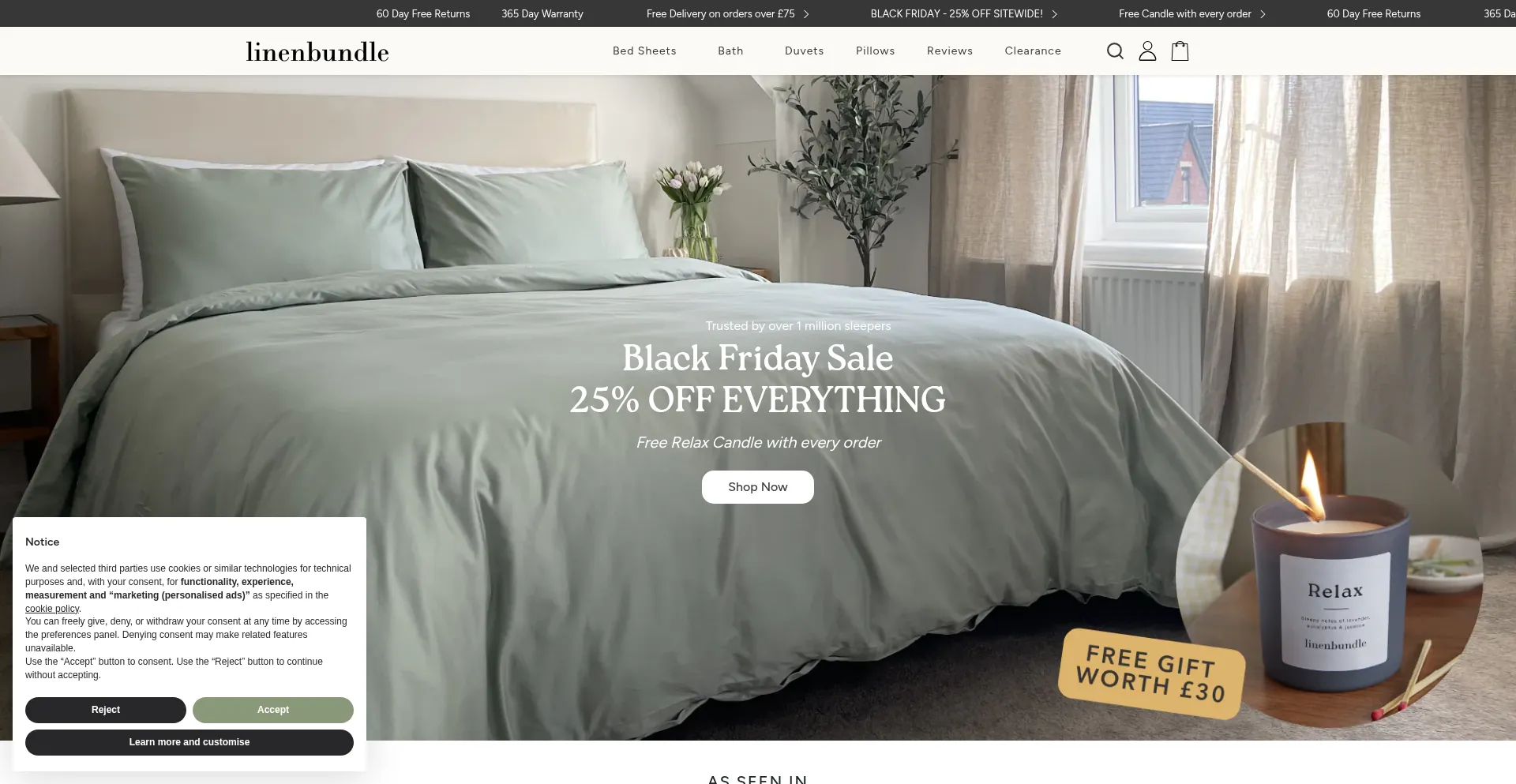 The website implements cookie consent mechanisms in compliance with privacy regulations such as GDPR or CCPA. This demonstrates that linenbundle.com adheres to data protection standards and provides users with control over personal data collection practices.