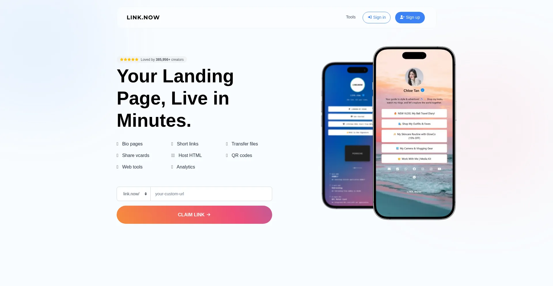 The link.now website uses Google Tag Manager to add and update tracking tags on its website.