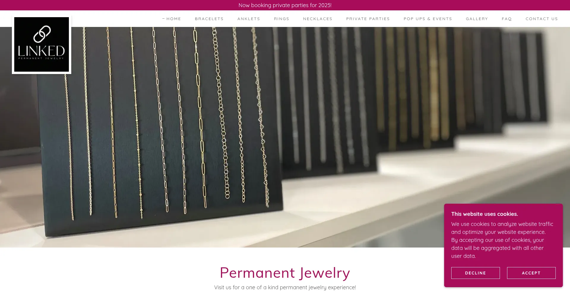 Linked Boston offering permanent bracelets, anklets and necklaces. Choose from 5 different metals, over 75 styles of chain, we are THE permanent jewelry destination.