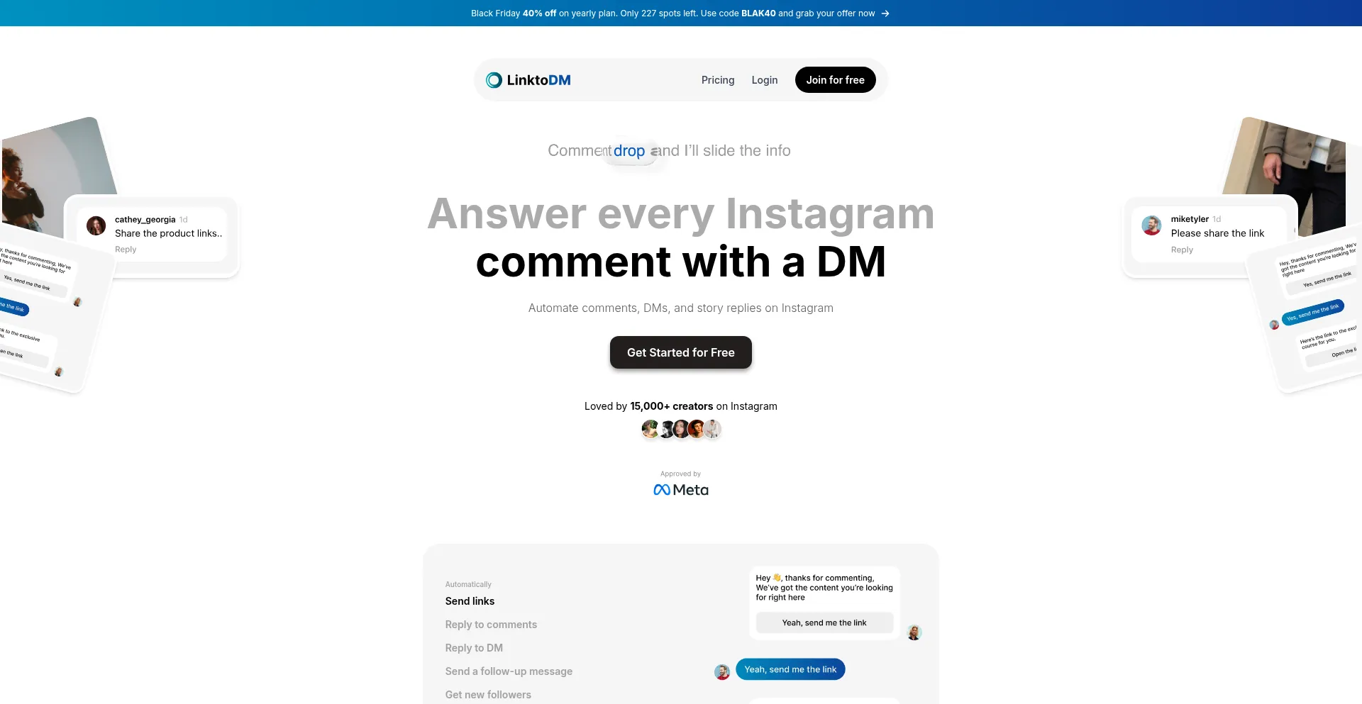 Automate Instagram comments, messages, posts, reels, stories, capture leads, grow followers, and more with LinktoDM. Start free and engage followers 24/7