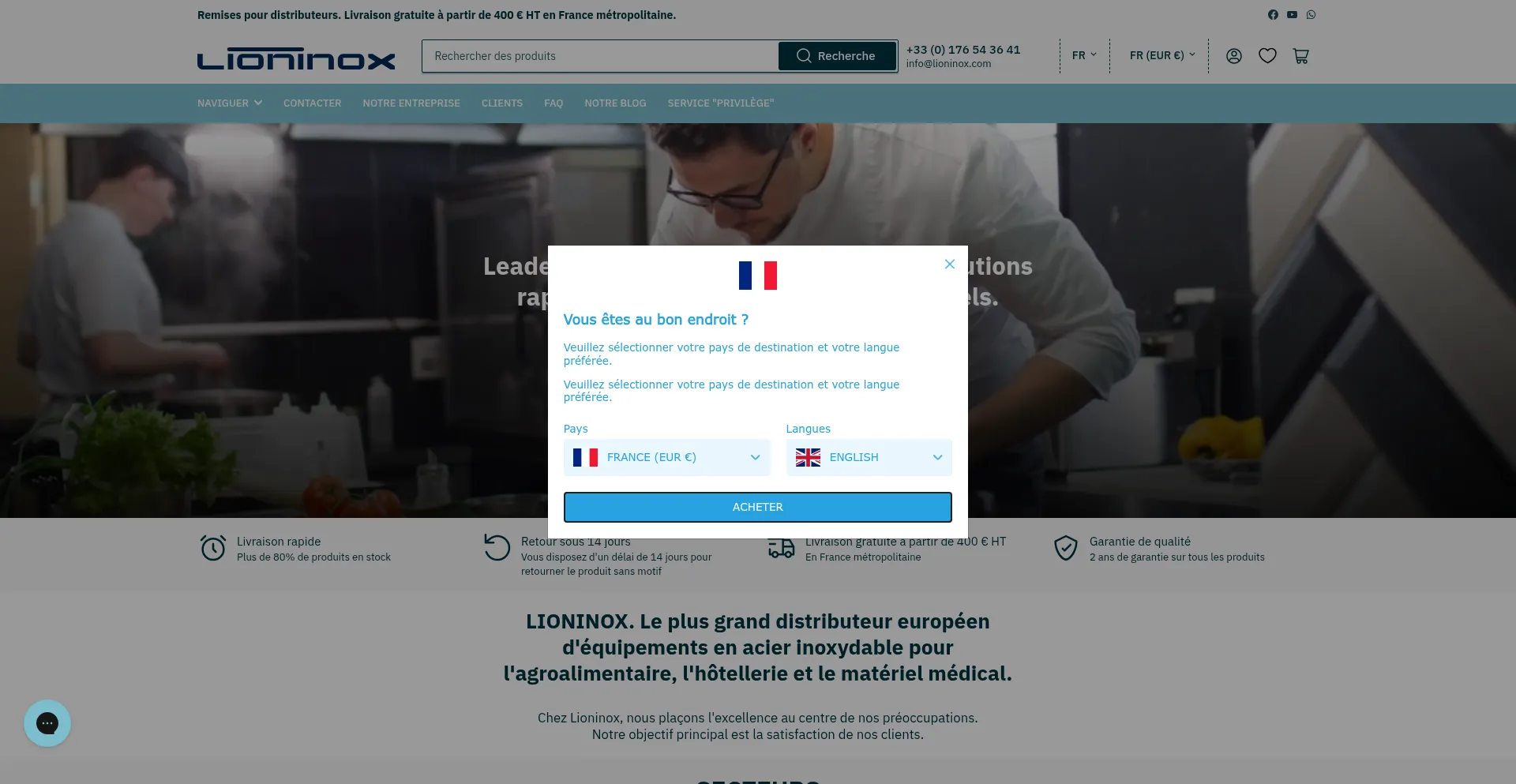 Matériel inox haut de gamme pour cuisines pros, boucheries et restaurants. Livraison rapide et remises pour revendeurs. Découvrez Lioninox.