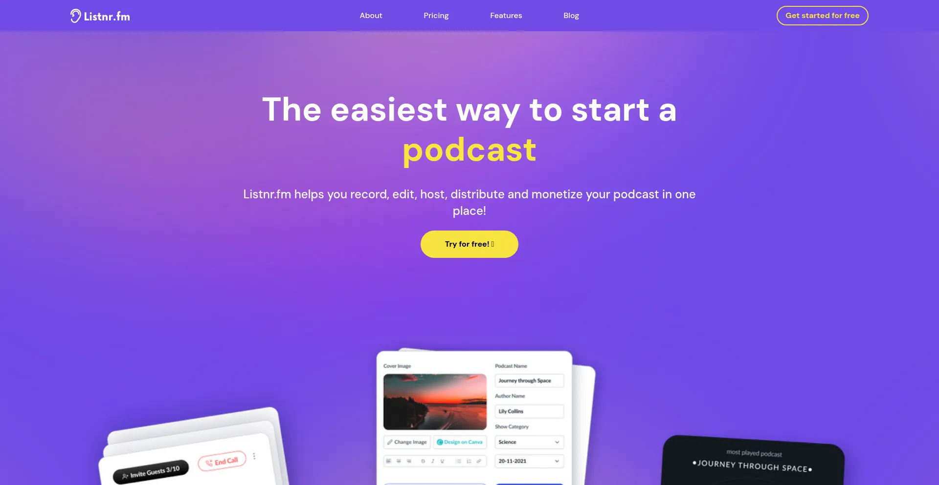 Listnr.fm | Streamline your podcast production with a single monthly subscription. Invite team members and see your podcasts stats. Distribute to Apple Podcasts, Spotify, Google...