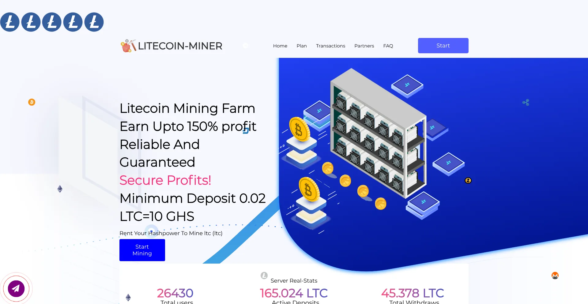 The litecoin-mining.top probably offers cloud mining services or cryptocurrency mining investments. Some platforms provide legitimate mining rental services, while others may use fake mining dashboards to display virtual earnings that cannot be withdrawn.