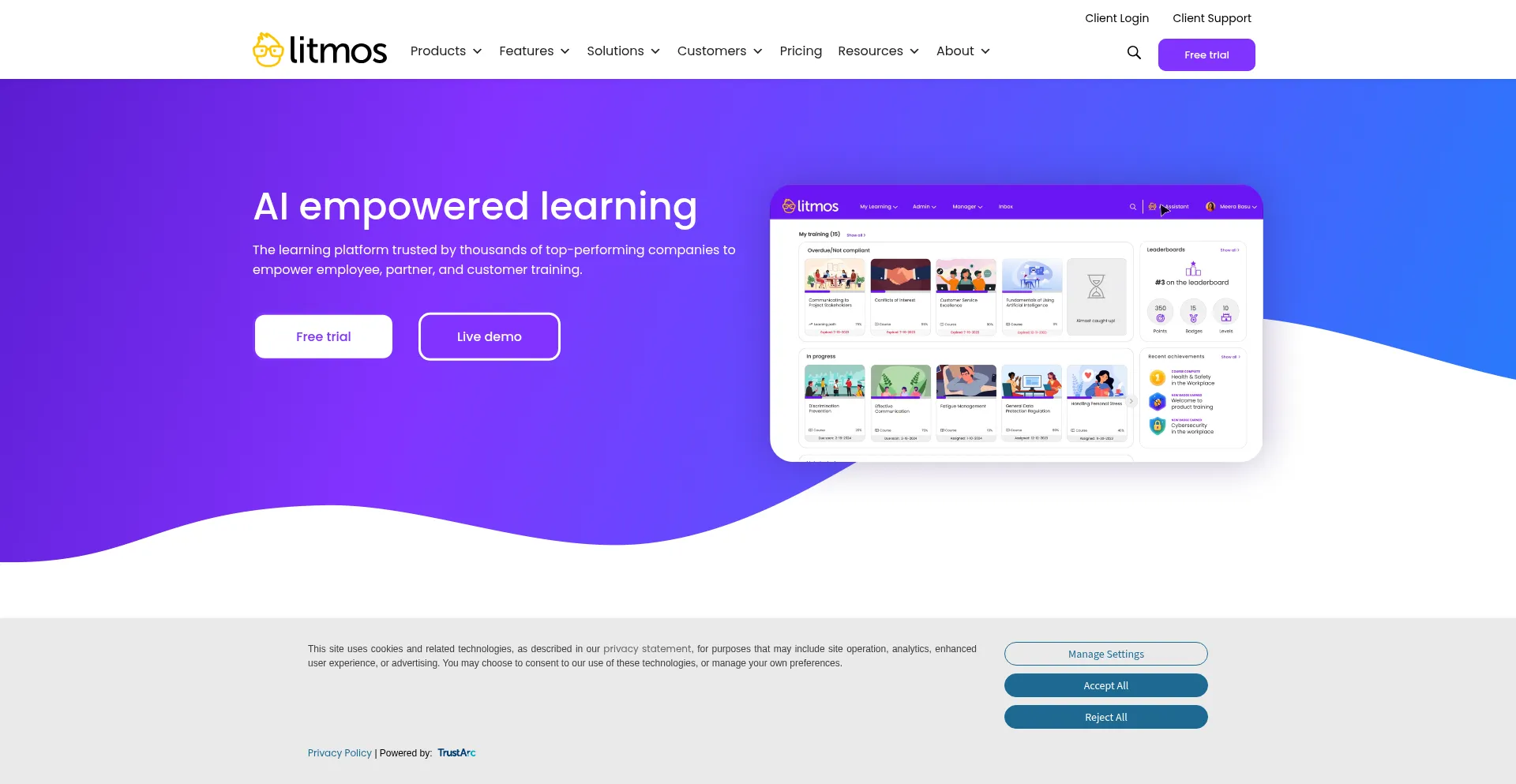The litmos.com.au website uses Google Tag Manager to add and update tracking tags on its website.
