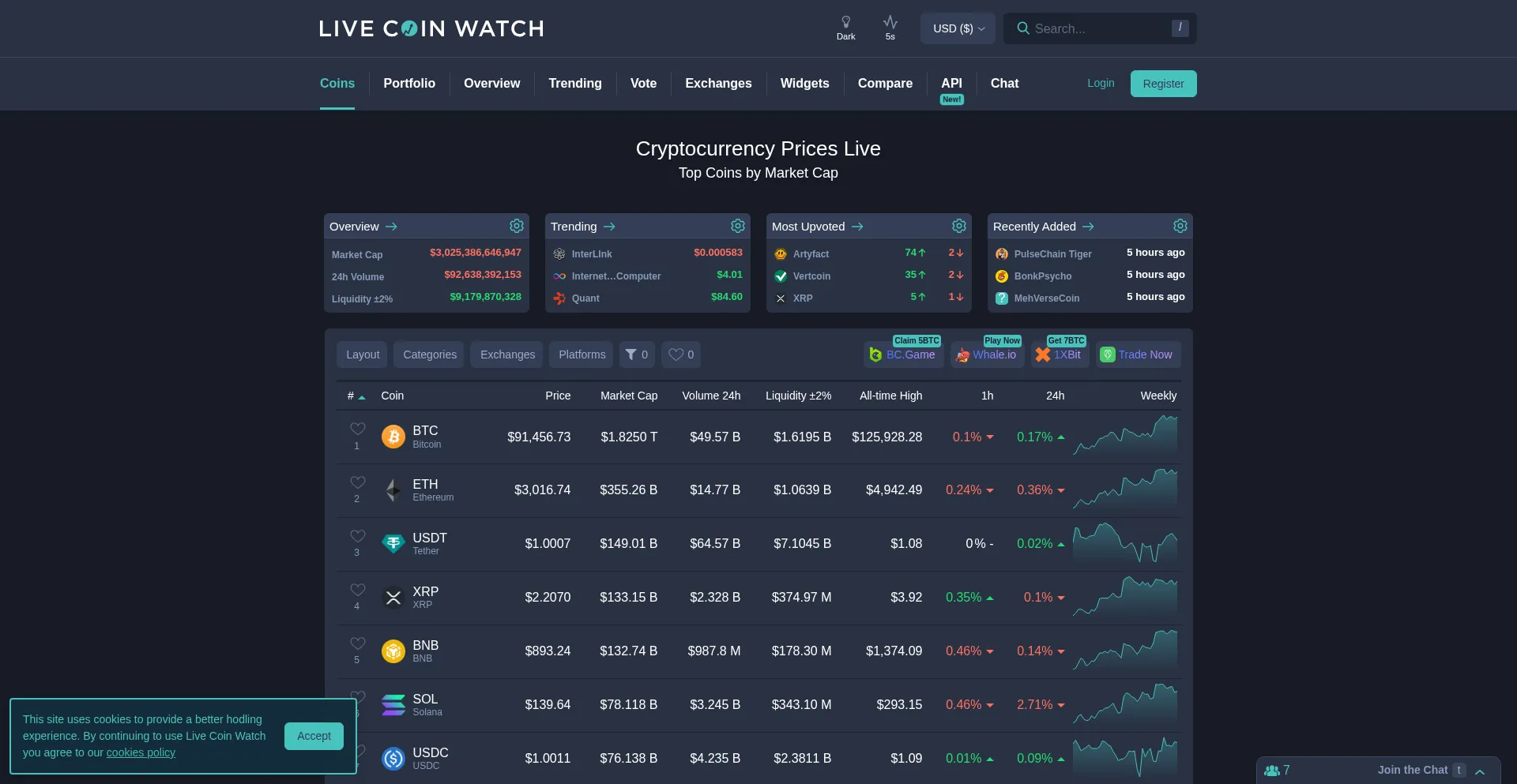 Fastest live cryptocurrency price & portfolio tracker with historical charts, latest coin markets from crypto exchanges, volume, liquidity, orderbooks and more!