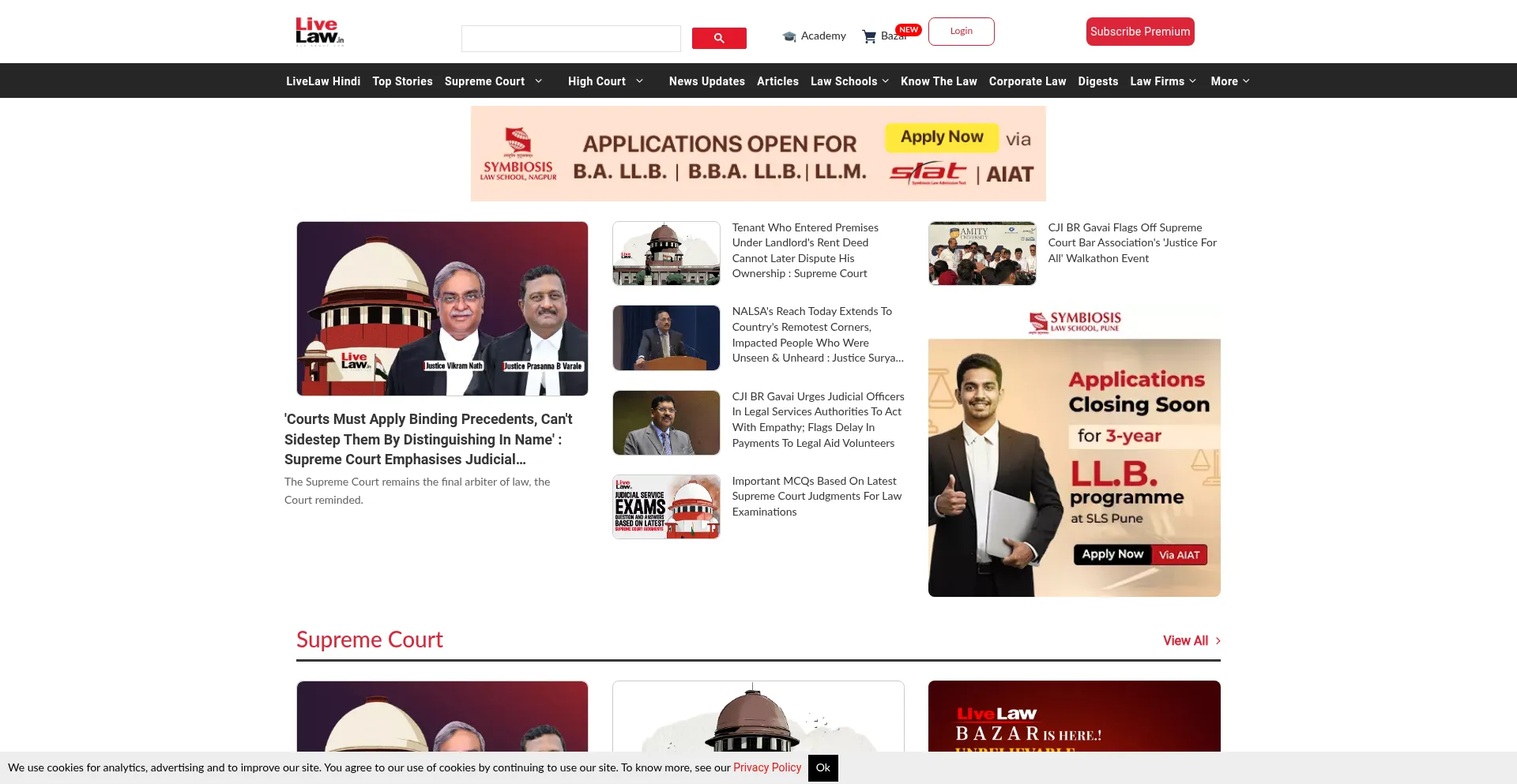 The website implements cookie consent mechanisms in compliance with privacy regulations such as GDPR or CCPA. This demonstrates that livelaw.in adheres to data protection standards and provides users with control over personal data collection practices.