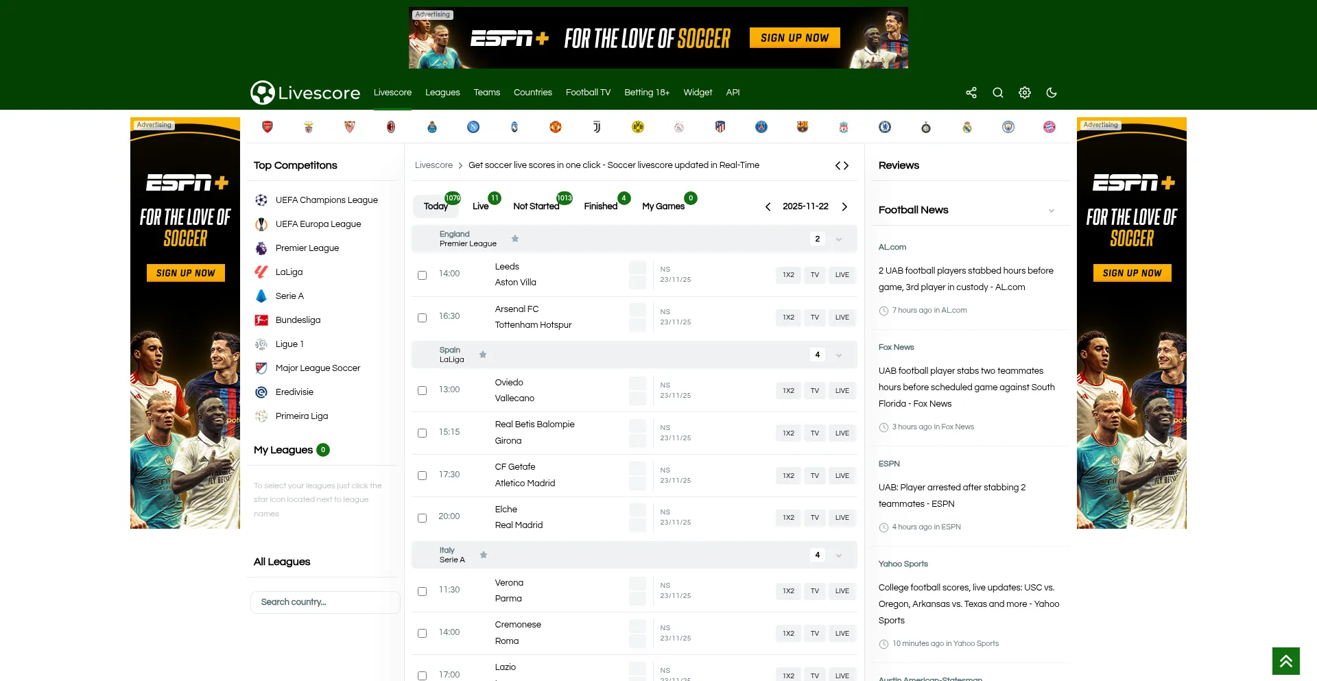Get soccer live scores in one click - Soccer livescore updated in Real-Time - Soccer Livescore