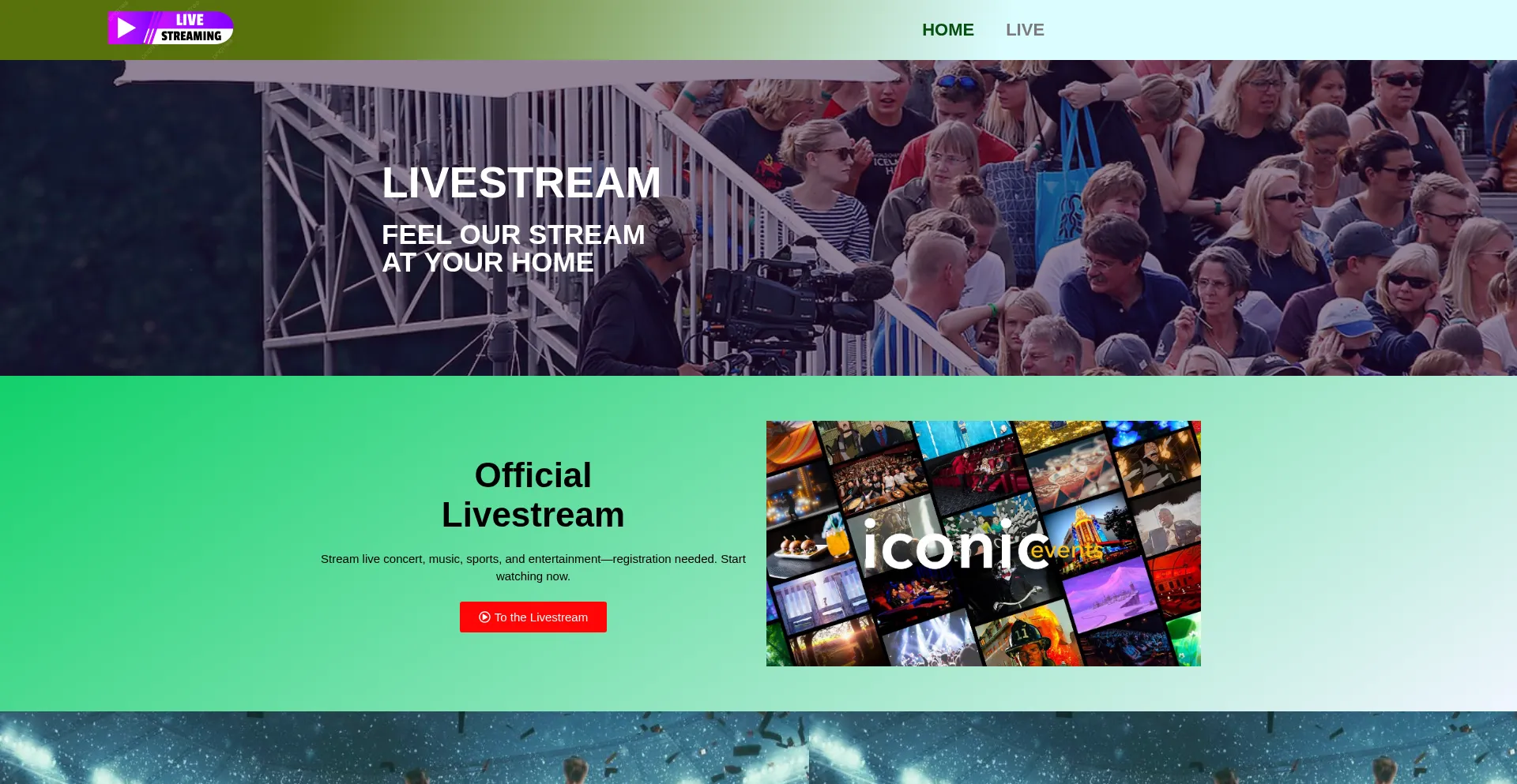 Stream live concert, music, sports, and entertainment—registration needed.