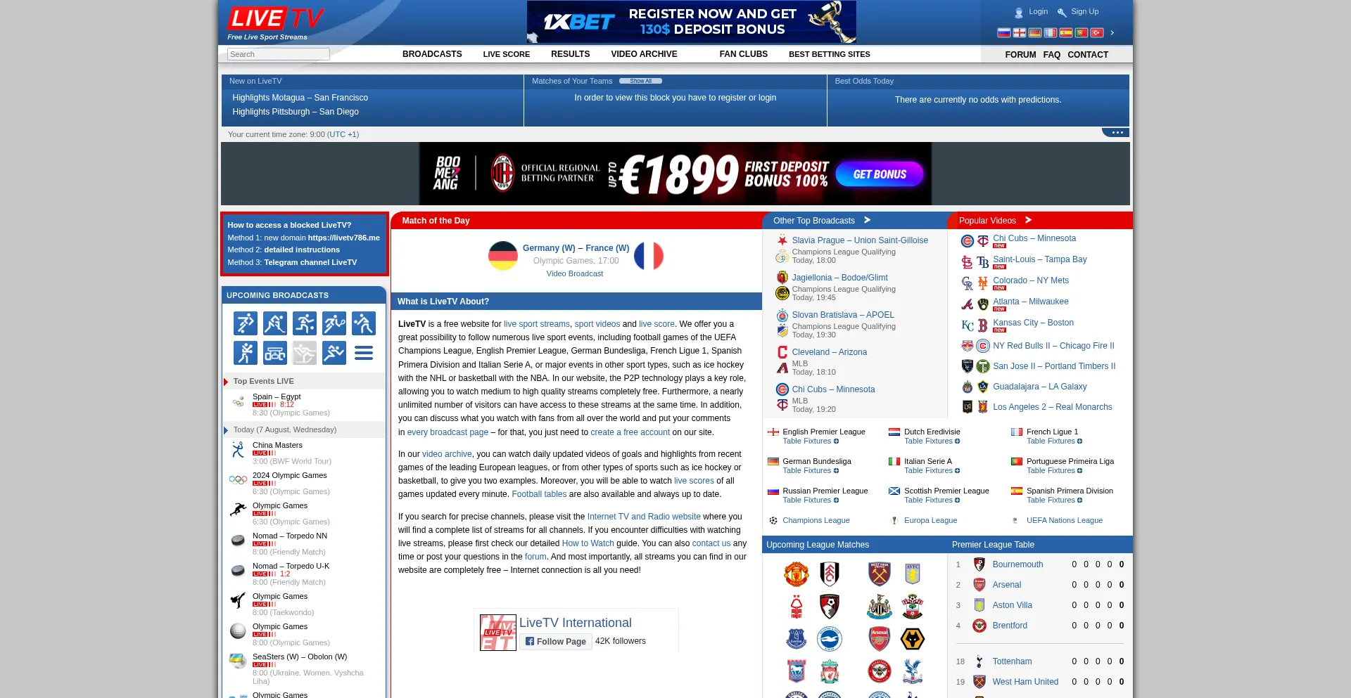 LiveTV is a free website for live sport streams, sport videos and live score.