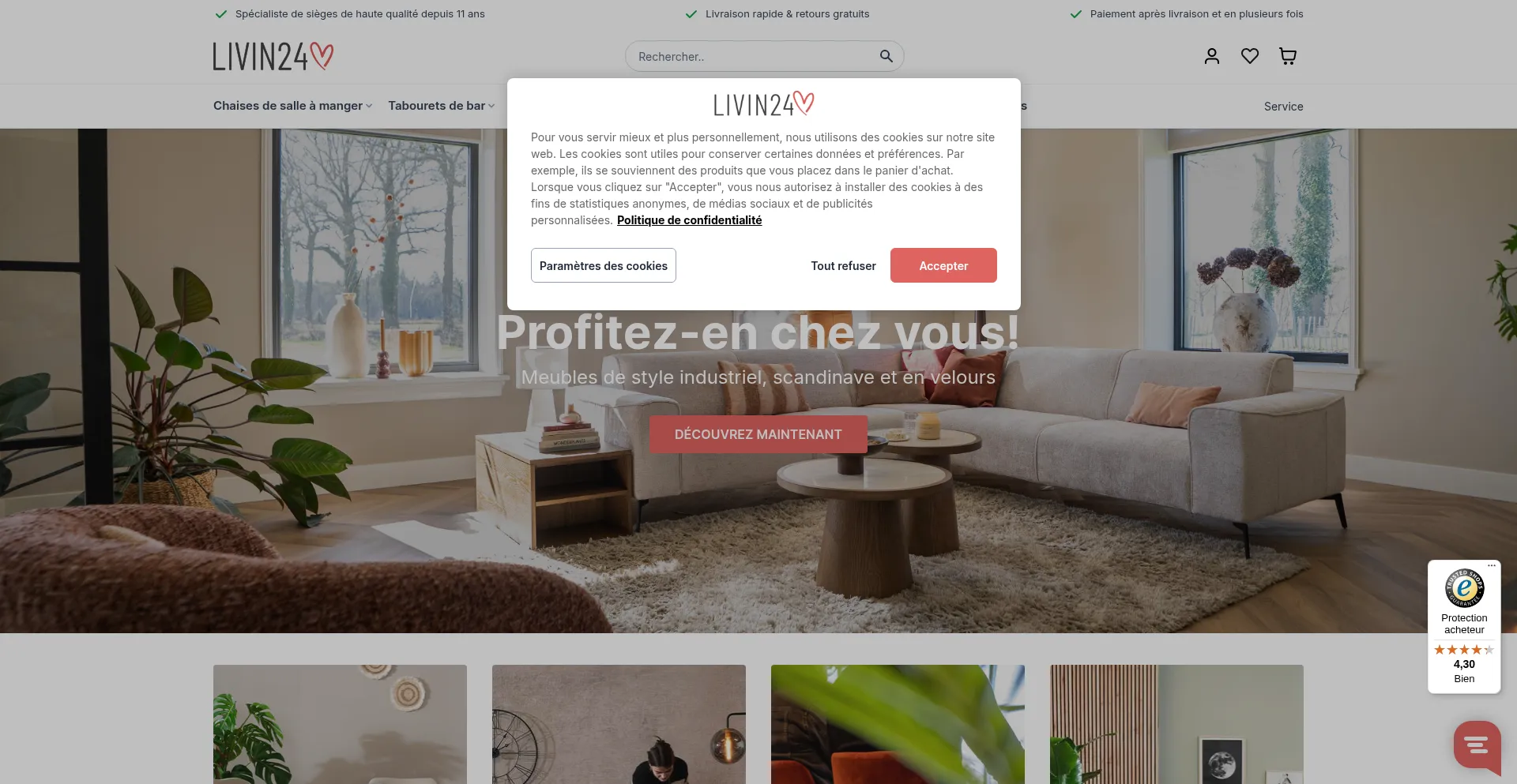 The website implements cookie consent mechanisms in compliance with privacy regulations such as GDPR or CCPA. This demonstrates that livin24.fr adheres to data protection standards and provides users with control over personal data collection practices.