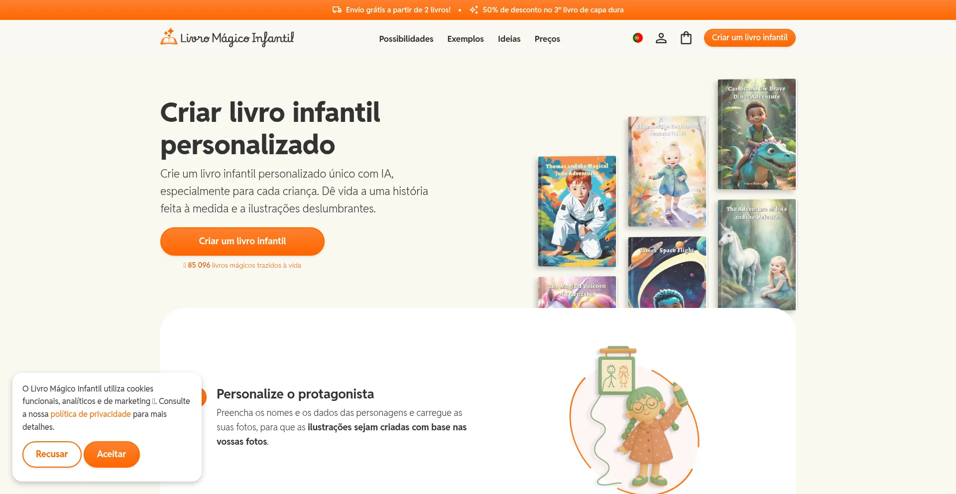 Crie e encomende livros infantis personalizados com IA. Crie histórias únicas e belas ilustrações para qualquer ocasião. Crie o seu próprio livro infantil!
