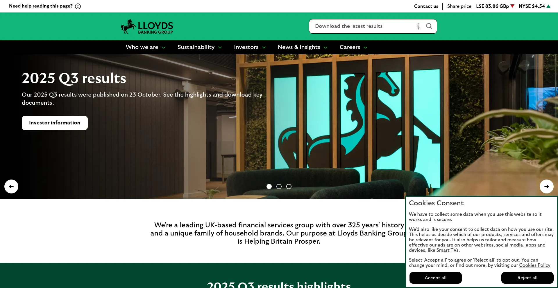 The lloydsbankinggroup.com website provides financial services including investment management, wealth advisory, or financial planning solutions. Services may encompass portfolio management, investment opportunities, financial consulting, or asset growth strategies for individual and institutional clients.