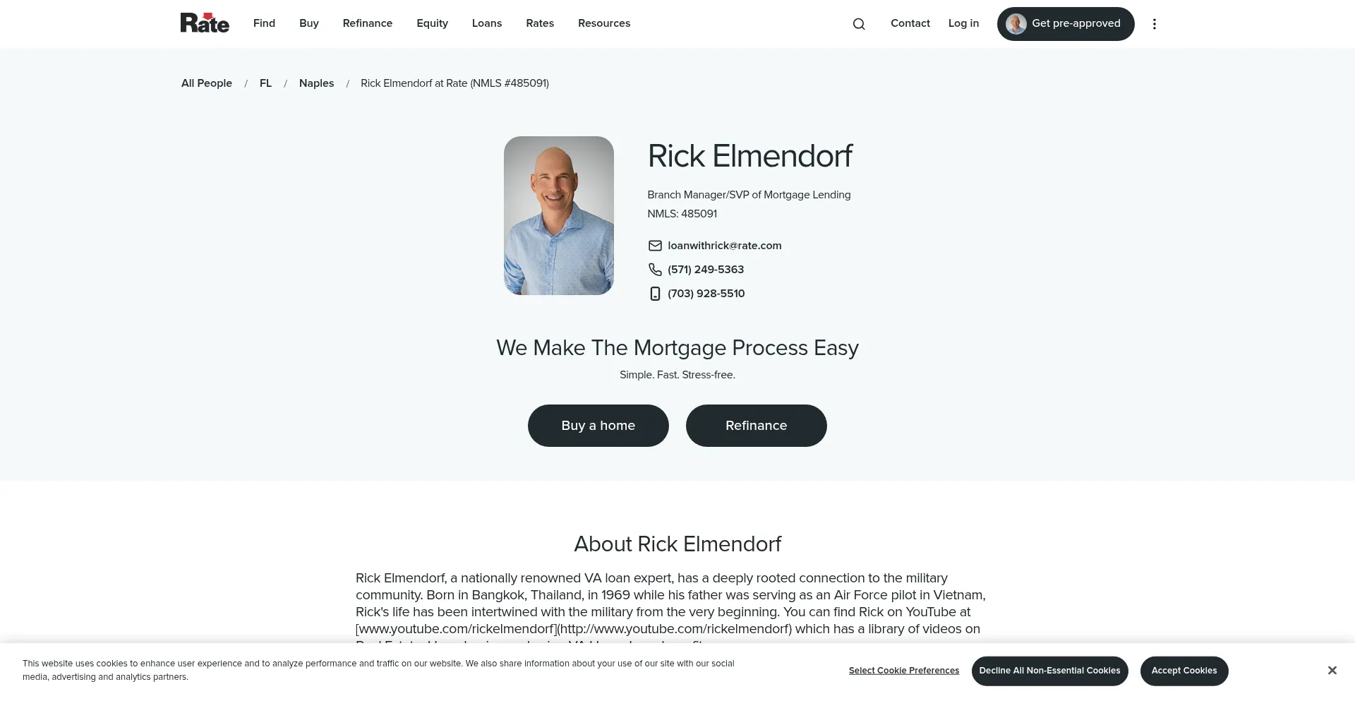 Rick Elmendorf, a mortgage lender at Rate (NMLS #485091) in Naples, FL, can help with home purchase, mortgage refinance & fast closings. Get approved today!