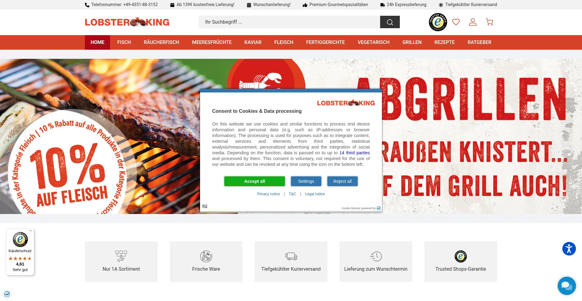Lobsterking Meeresfrüchte & Gourmetspezialitäten per Expresslieferung
