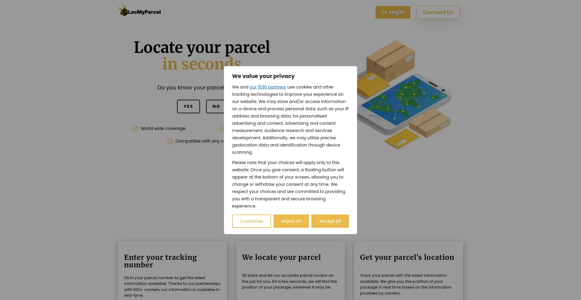 The website implements cookie consent mechanisms in compliance with privacy regulations such as GDPR or CCPA. This demonstrates that locmyparcel.info adheres to data protection standards and provides users with control over personal data collection practices.