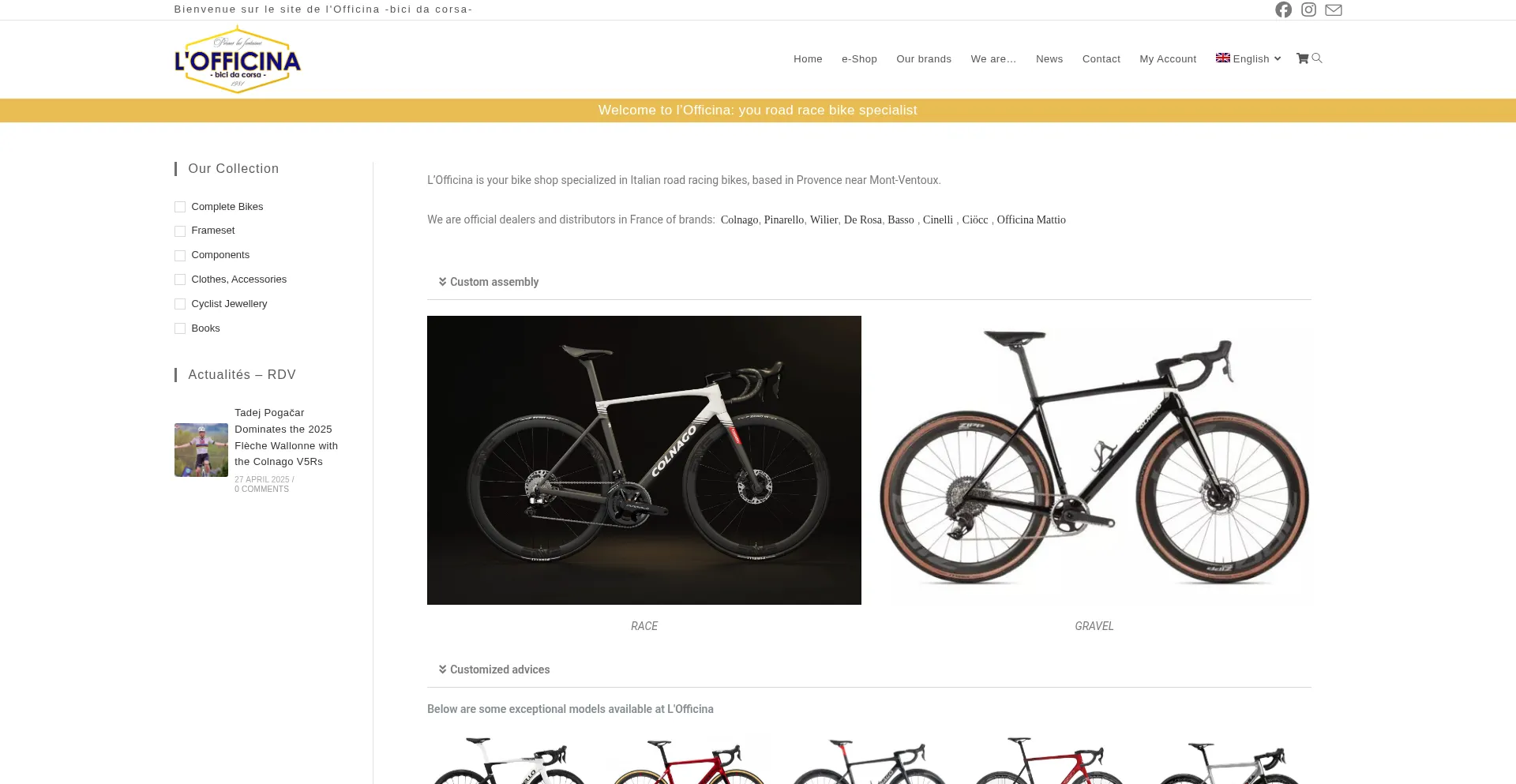 L'OFFICINA is THE shop dedicated to roadbikes in Provence with Italian brands as Pinarello with the Dogma F Colnago C68 and V4rs Basso Wilier