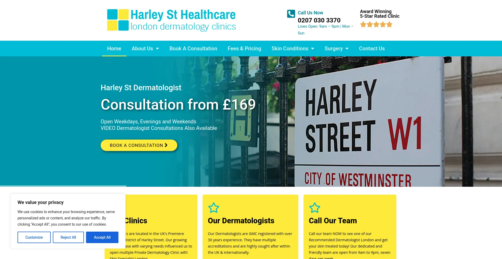 The website implements cookie consent mechanisms in compliance with privacy regulations such as GDPR or CCPA. This demonstrates that londondermatologyclinics.com adheres to data protection standards and provides users with control over personal data collection practices.
