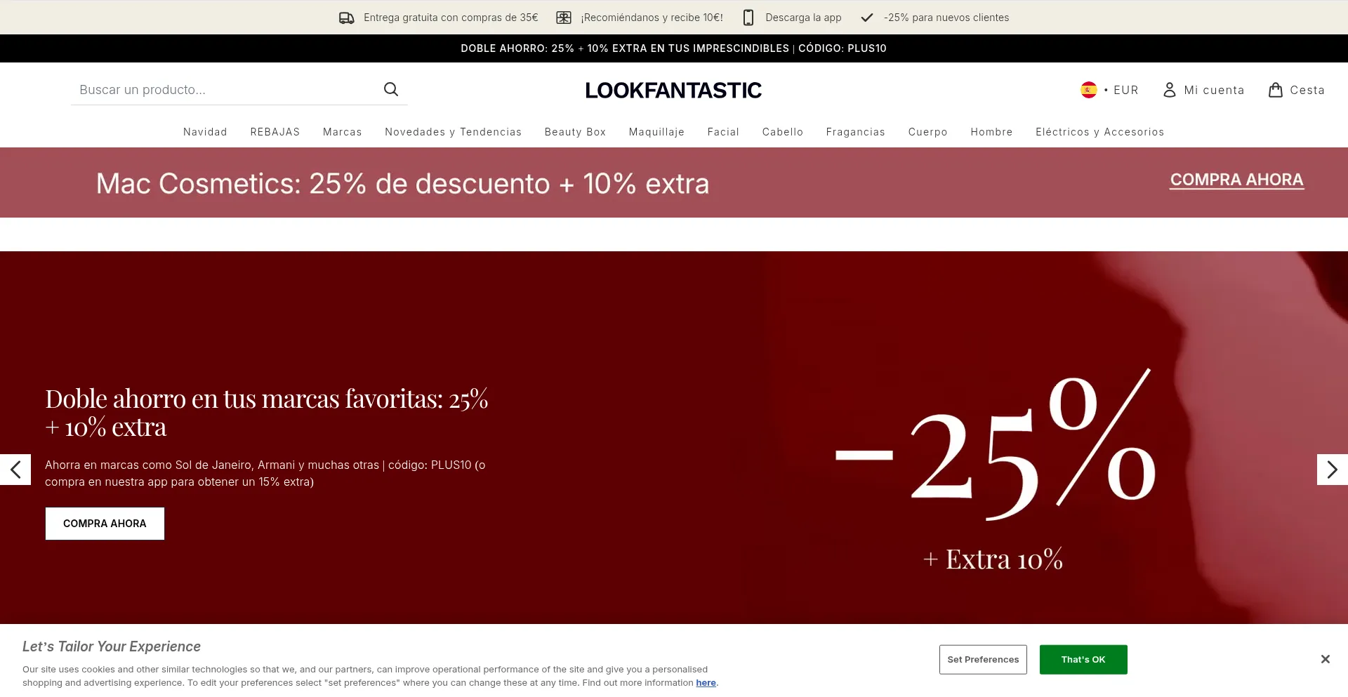 The website implements cookie consent mechanisms in compliance with privacy regulations such as GDPR or CCPA. This demonstrates that lookfantastic.es adheres to data protection standards and provides users with control over personal data collection practices.