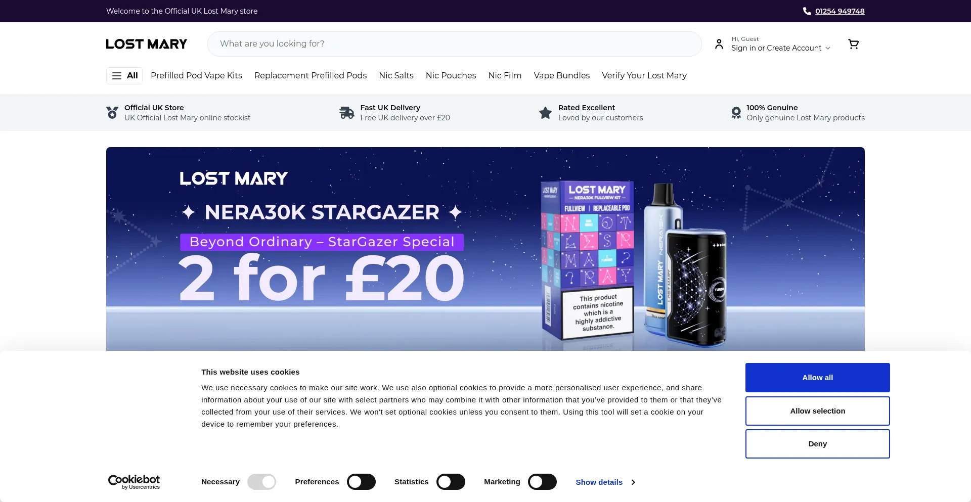 The official Lost Mary UK vape store has a range of disposable vapes designed with elegance and performance. Lost Mary vapes deliver excellent flavour for an unrivalled vaping e...