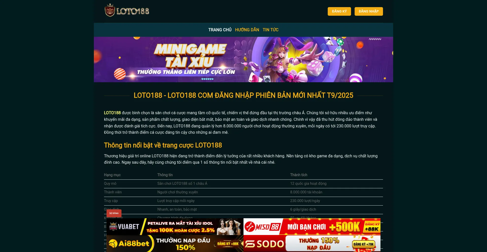 LOTO188 - Top 1 Nhà Cái Lô Đề Hot 2025 - Đăng Ký +50k