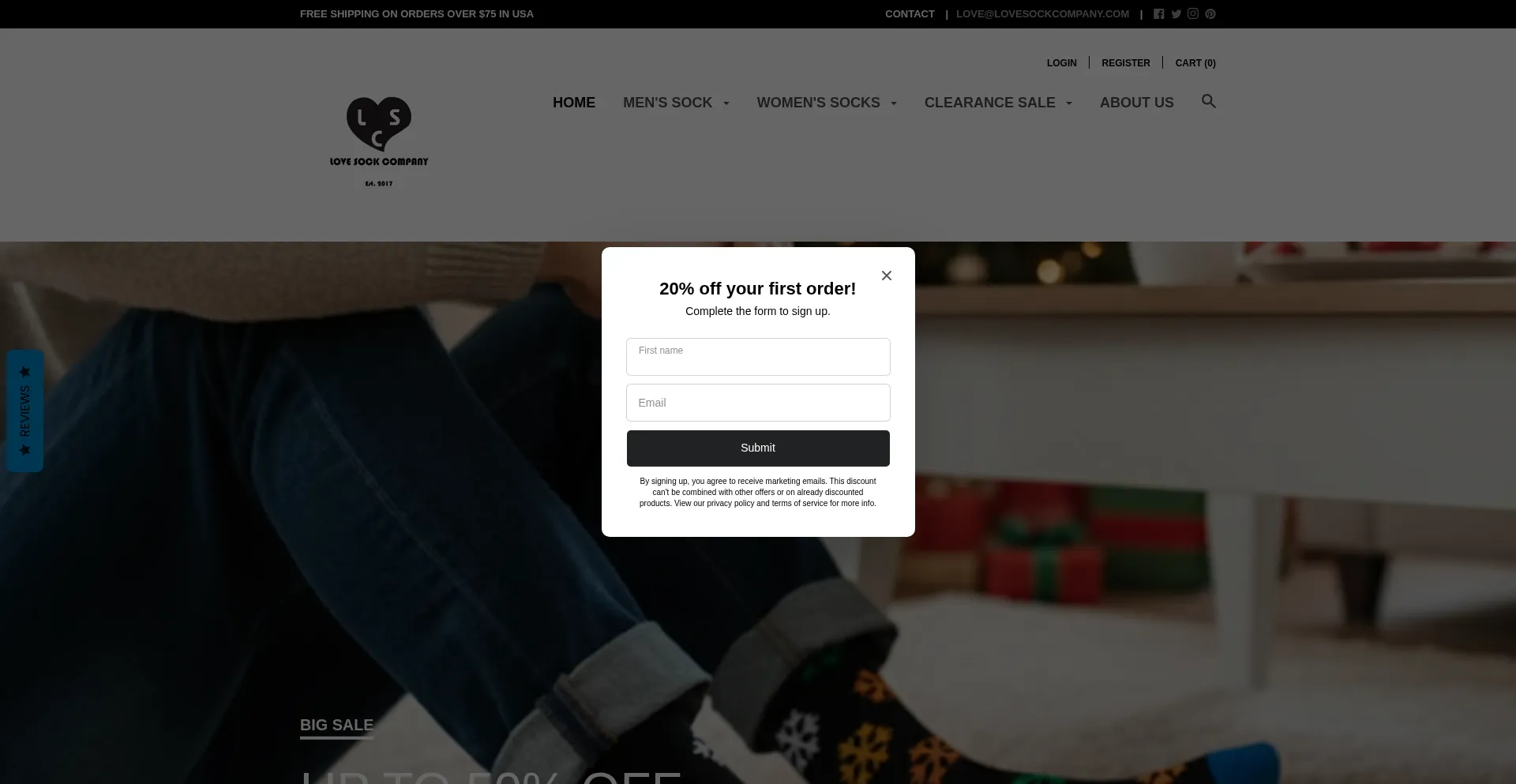 Analysis indicates that lovesocks.com operates as an e-commerce platform facilitating online transactions for goods or services. The website implements shopping cart functionality, payment processing systems, and product catalog features typical of commercial retail operations.