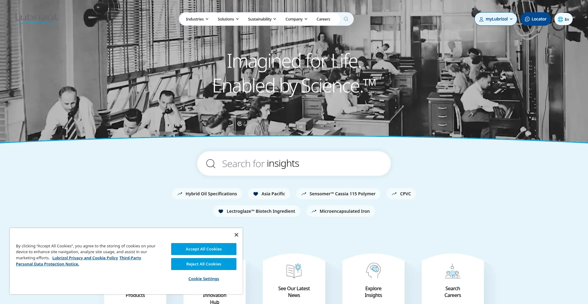 The website implements cookie consent mechanisms in compliance with privacy regulations such as GDPR or CCPA. This demonstrates that lubrizol.com adheres to data protection standards and provides users with control over personal data collection practices.