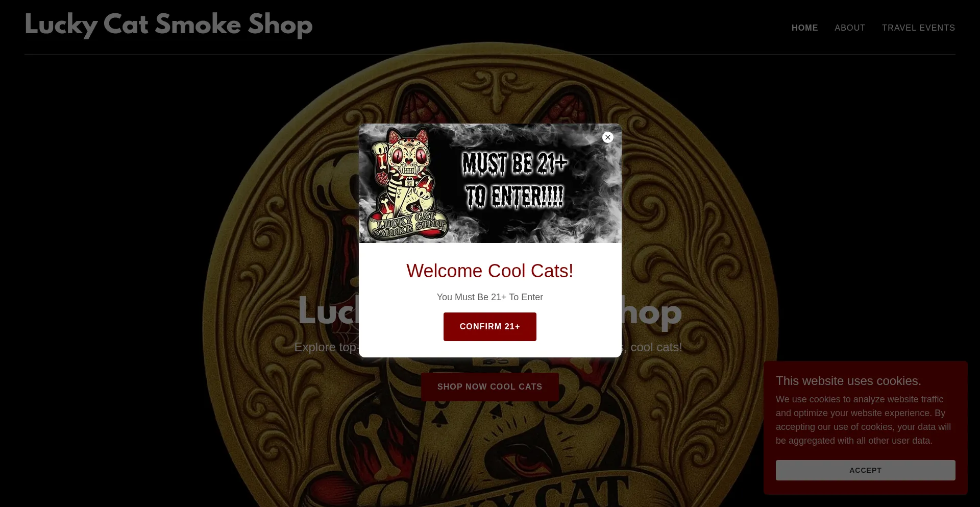 The website implements cookie consent mechanisms in compliance with privacy regulations such as GDPR or CCPA. This demonstrates that luckycatsmokeshop.com adheres to data protection standards and provides users with control over personal data collection practices.